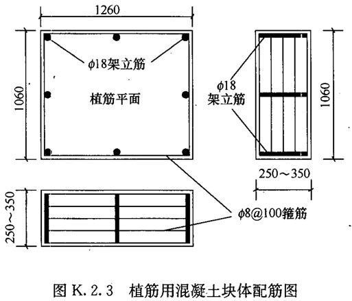 U.3.1 种植后锚固件的基材,应采用强度等级为C30的混凝土块体。块体的设计应符合下列规定: