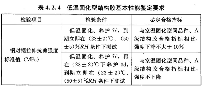 对未经改性的结构胶,指能在不低于15℃的室温下进行正常化学反应的固化过程;对改性的结构胶,指能在不低于5℃的室温下进行正常化学反应的固化过程。