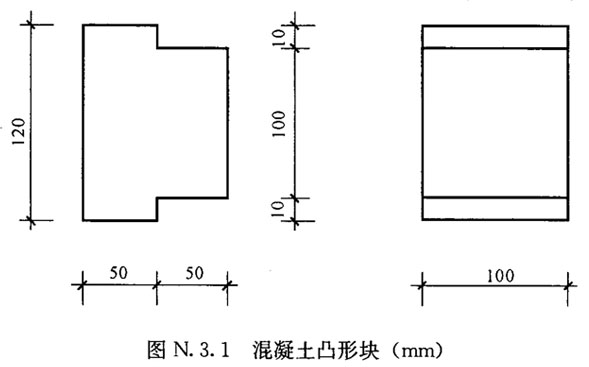 U.3.2 混凝土块体的制作,应按所要求的强度等级进行配合比设计。块体浇注后应经28d标准养护。在养护期间应保持混凝土处于湿润状态,以防出现早期裂纹。