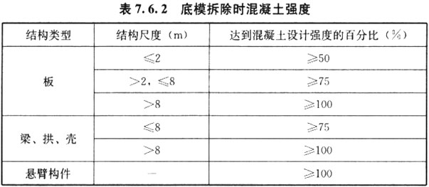 7.7.5 冬期施工的人工砂混凝土,日均气温低于5℃时,不得采取浇水自然养护方法。撤除养护措施时,混凝土强度应至少达到设计强度等级的50%。