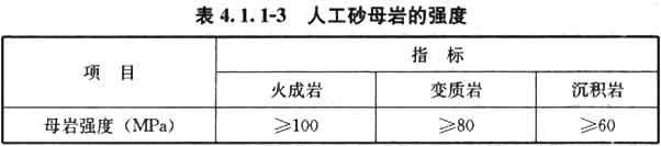 4 用于生产人工砂母岩的强度应符合表4.1.1-3的规定。