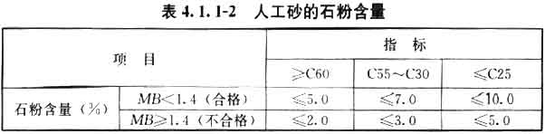 3 人工砂中的石粉含量应符合表4.1.1-2的规定。