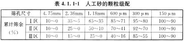 4.1.1 人工砂技术要求如下: