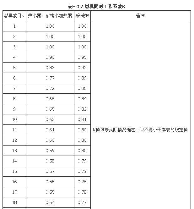 注:1 表中“燃气双眼灶”是指一户居民装设一个双眼灶的同时工作系数;当一户居民装设二个单眼灶时,也可参照本表计算。