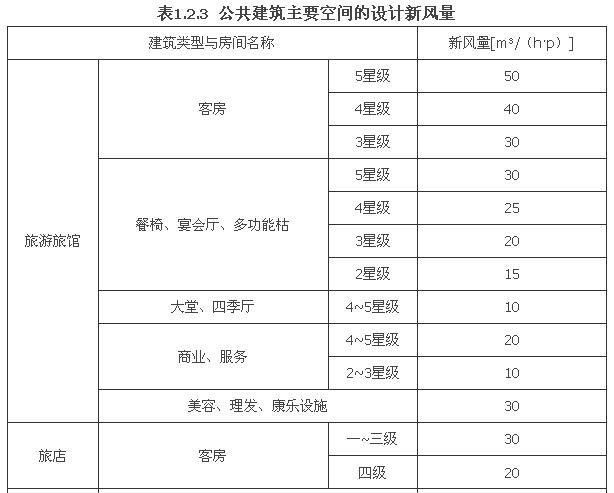 1.2.3 公共建筑主要空间的设计新风量,应符合表1.2.3的规定。