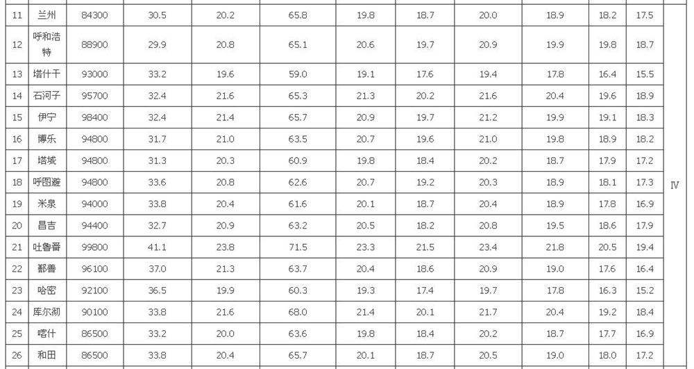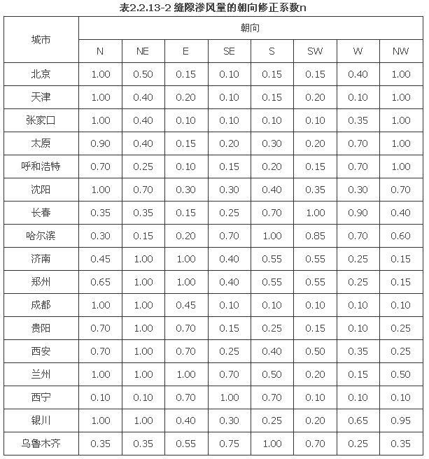 注:1 表中数值适用于我国东北、华北、西北地区。