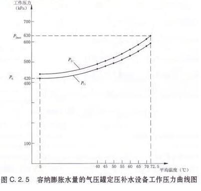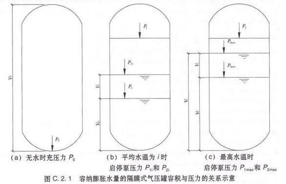 C.2.1 采用容纳膨胀水量的隔膜式气压罐定压,其容积与压力的关系见图C.2.1。