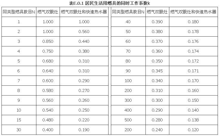 附录E 居民生活用燃具的同时工作系数