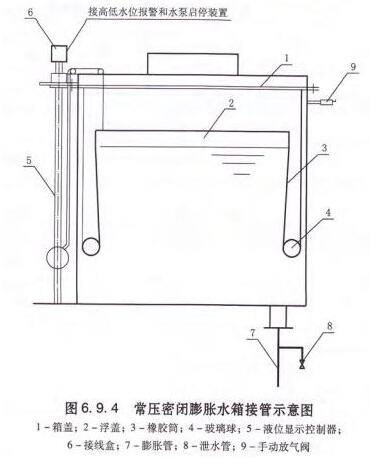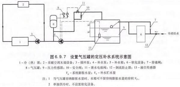 2 通过上述计算可以看出,较太的采暧系统采用能够容纳膨胀量的隔膜式气压罐定压,主要容积为膨胀量,且罐总容积Vzmin数值很大(例中为6664L〕; 因此当具有设置高位膨胀水箱条件时. 可采用高位常压密闭水箱, 其容积满足Vxmin(例中为1917L〕即可。