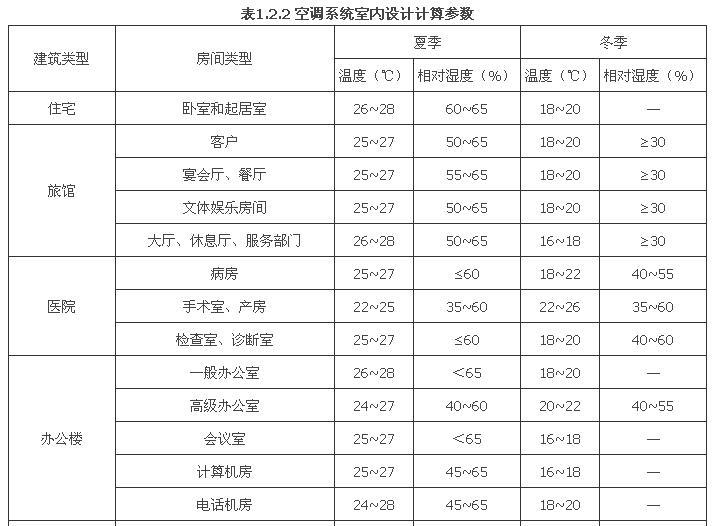 1.2.2 空调房间的室内设计计算参数宜符合表1.2.2的规定。