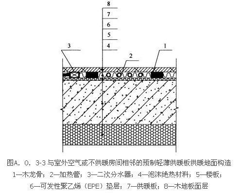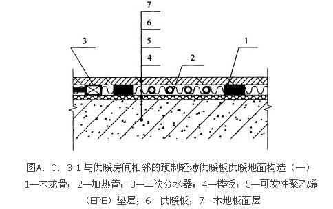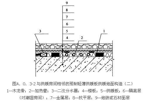 2 预制轻薄供暖板地面供暖(供暖板成品厚度小于或等于13mm,保温基板内镶嵌的加热管外径小于或等于8mm)。