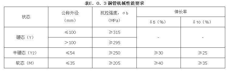 E.0.3 铜管机械性能应符合表E.0.3的规定。