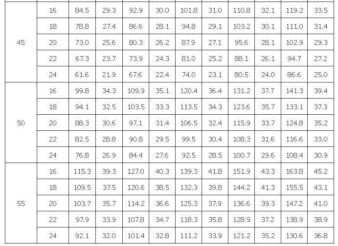 1 搭接焊式铝塑复合管长期工作温度和允许工作压力应符合表C.2.2-1的规定。