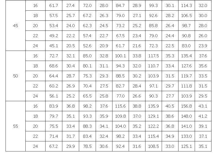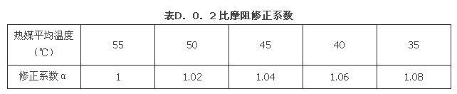 D.0.2 当热媒平均温度不等于55℃时,可由表D.0.2查出比摩阻修正系数,并按下式进行修正。