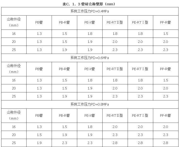 2.0.4 本条规定的加热供冷管指不包含毛细管网的所有其他应用于地面辐射供暖供冷的室内水管道,包括铝塑复合管、聚丁烯-1管、交联聚乙烯管、耐热聚乙烯管、铜管等。