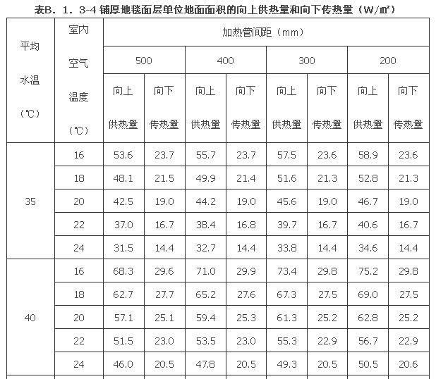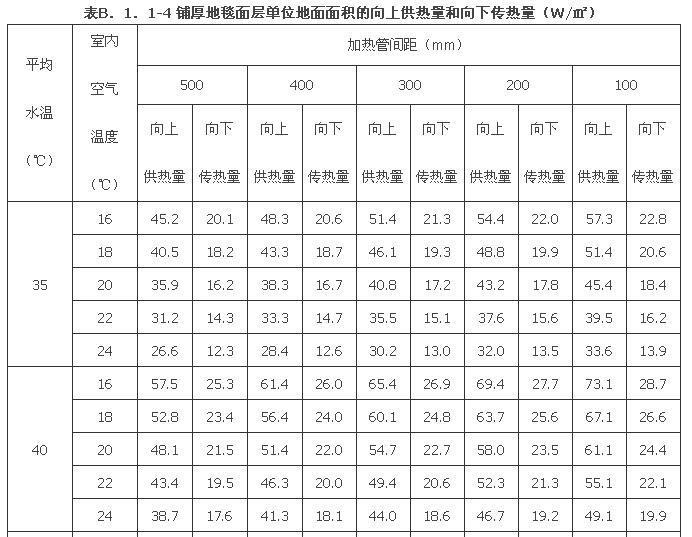 G.0.5 辐射供暖装置依据设计以及工程应用过程中辐射供暖供冷的供回水和室内温度参数来确定,设计中要求“热水地面辐射供暖系统的供、回水温度应由计算确定,供水温度不应大于60℃,供回水温差不宜大于10℃,且不宜小于5℃。民用建筑供水温度宜采用35℃~45℃。”工程中常采用的比较高的供水温度55℃,回水温度48℃,所以,本规程将供回水温度55℃/48℃定为高温工况(标准工况),在《采暖散热器散热量测定方法》GB/T 13754中规定室内基准温度为18℃,本规程仍沿用此温度,则过余温度为33.5K;而按照设计中“民用建筑供水温度宜采用35℃~45℃。”,则第二工况供水温度定为45℃,一般回水温度会在39℃左右,过余温度为24K;第三工况供水温度定为35℃,回水一般会在31℃左右,过余温度为15K。