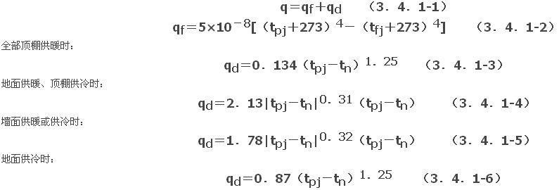 G.0.4 以水为媒介的辐射系统辐射供热量或供冷量标准特征公式应按下式计算: