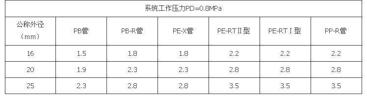 注:1 XPAP1:一型铝塑管 聚乙烯/铝合金/交联聚乙烯;
