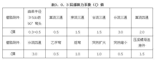 D.0.3 塑料管及铝塑复合管局部阻力系数(ζ)值可按表D.0.3选用。