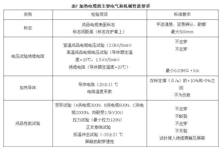 附录F 加热电缆的电气和机械性能要求