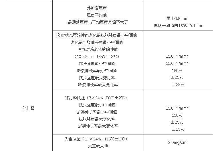 注:1 交联度要求:硅烷交联大于或等于65%;辐照交联大于或等于60%;