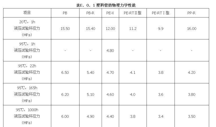附录E 加热供冷管管材物理力学性能