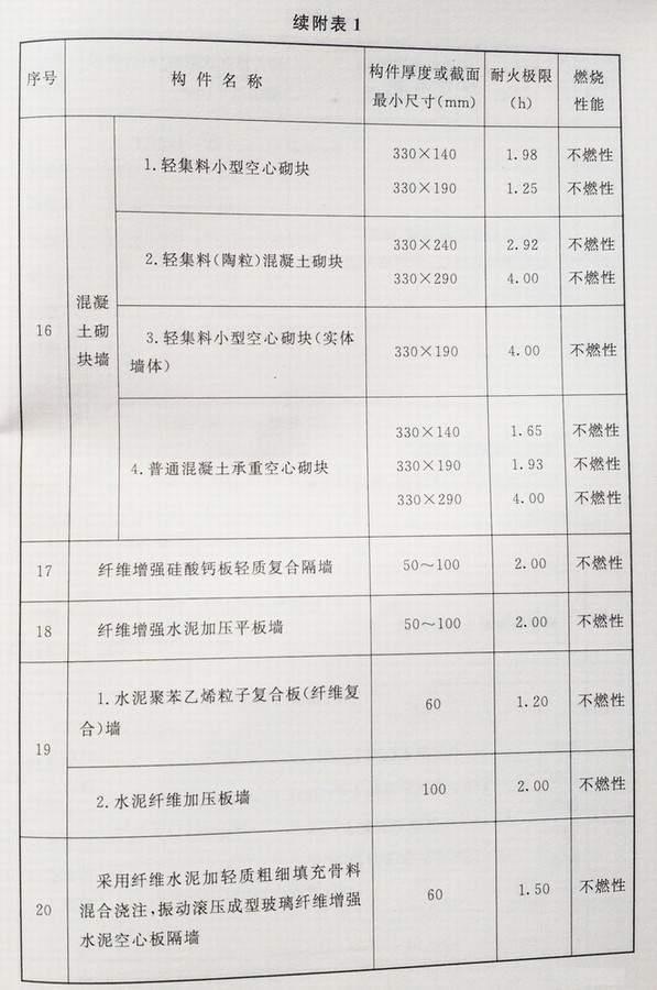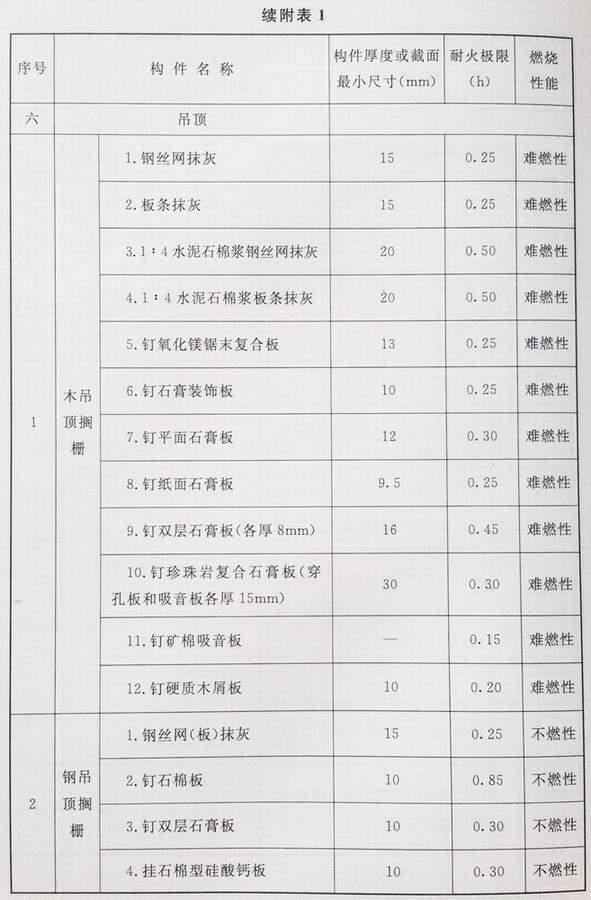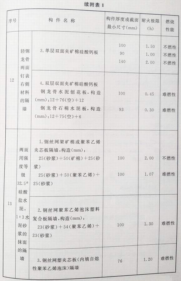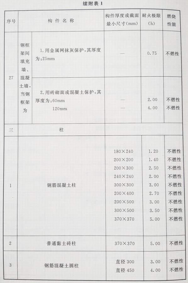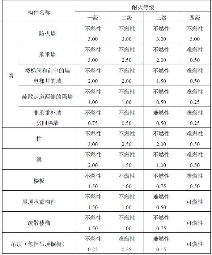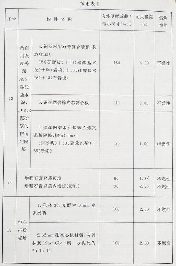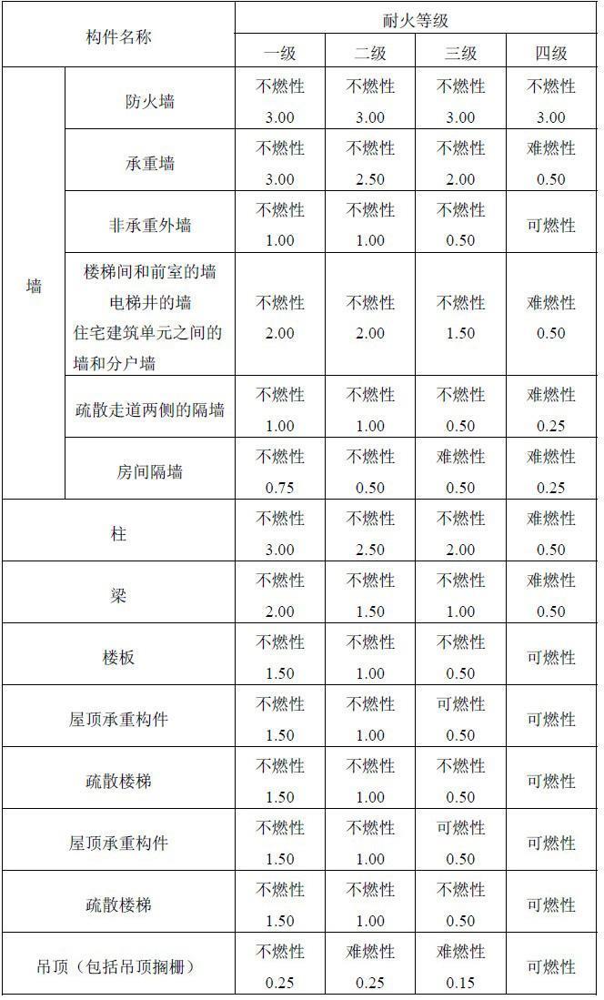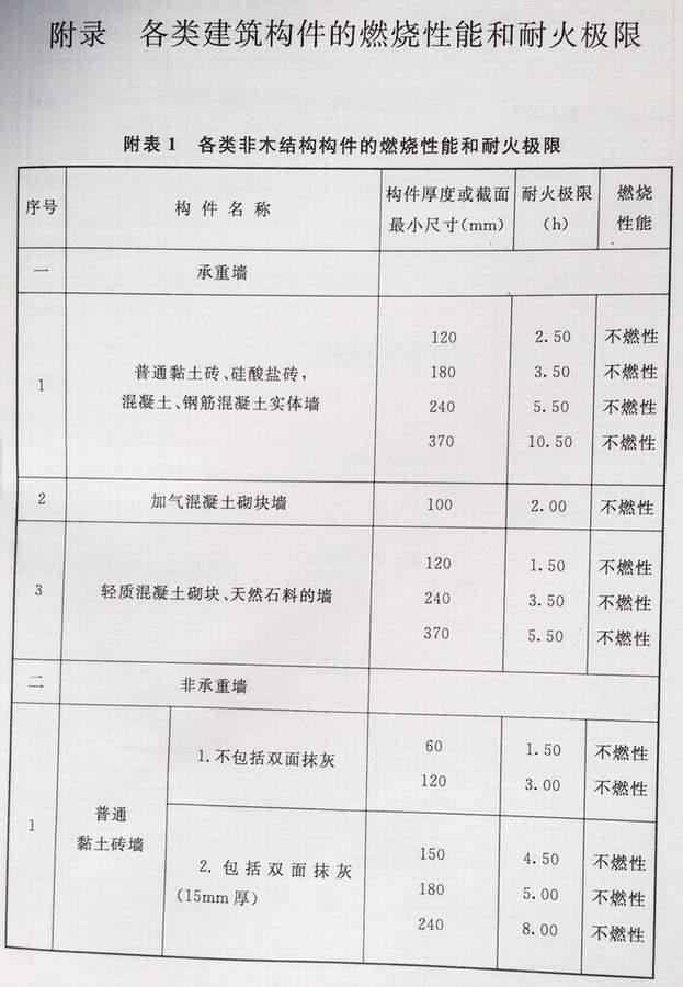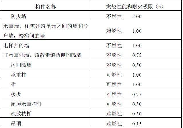 附录 各类建筑构件的燃烧性能和耐火极限替换条文文字