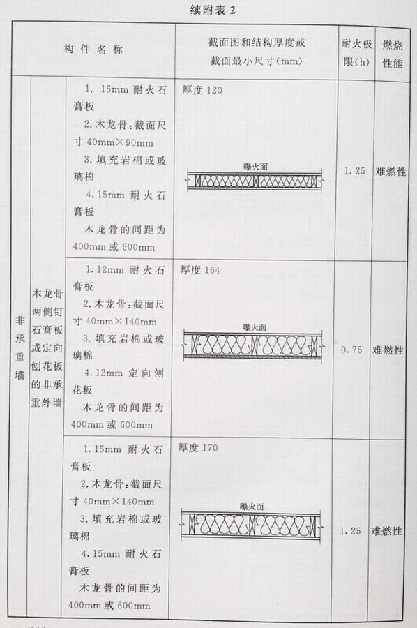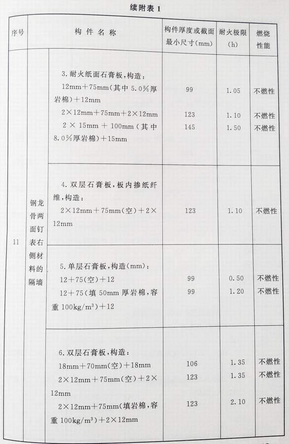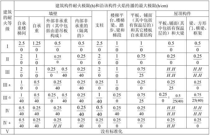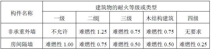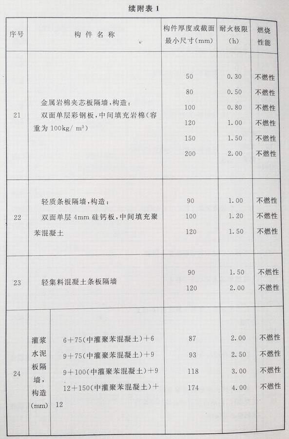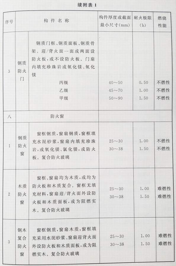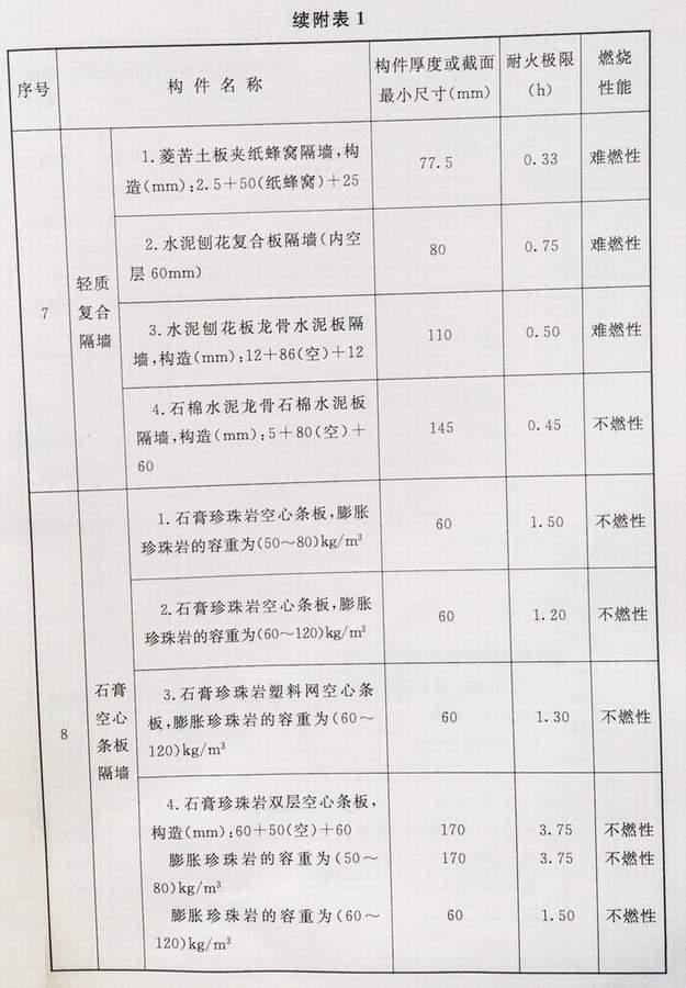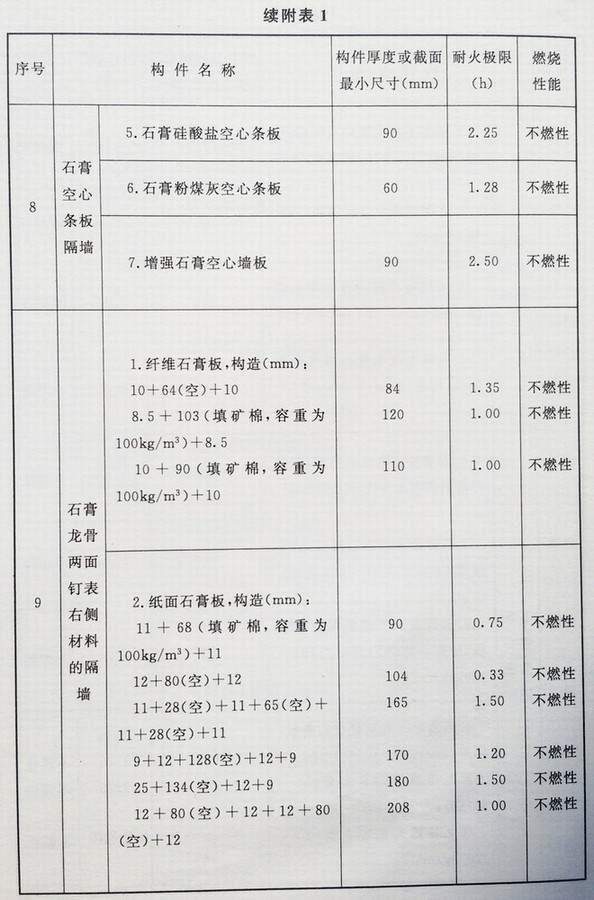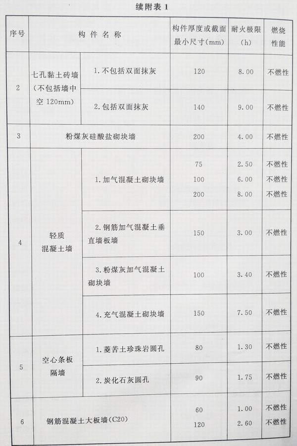 附录 各类建筑构件的燃烧性能和耐火极限替换条文文字