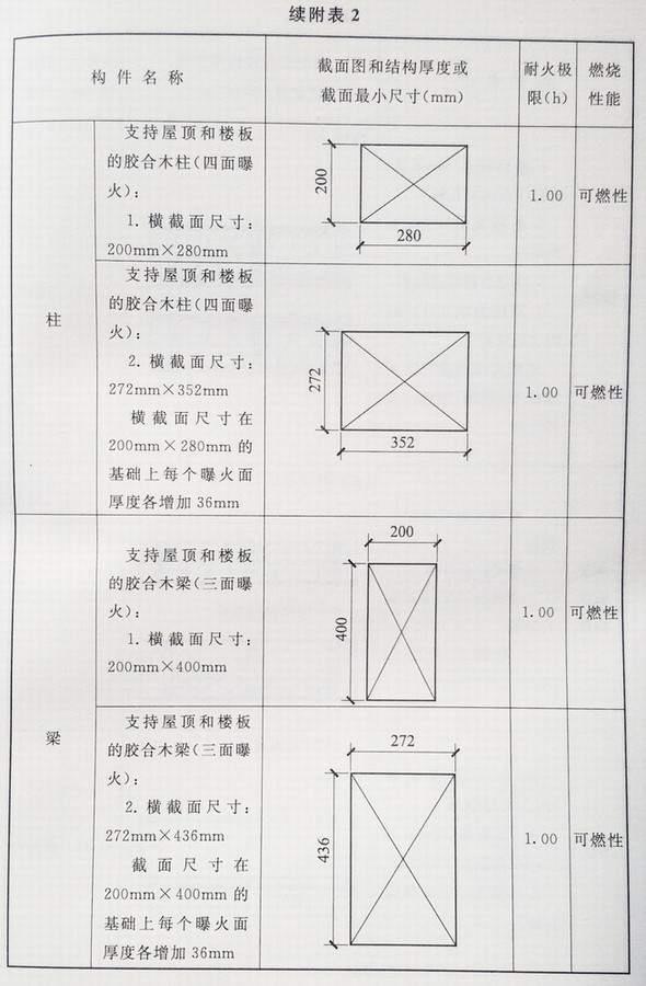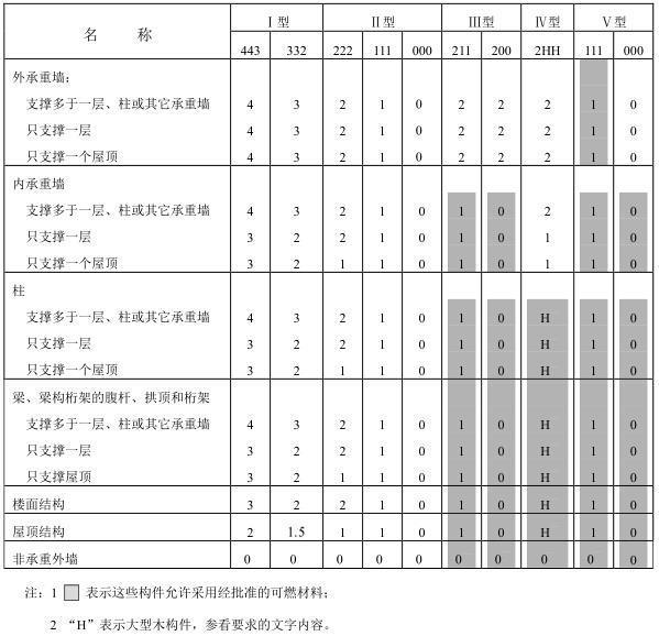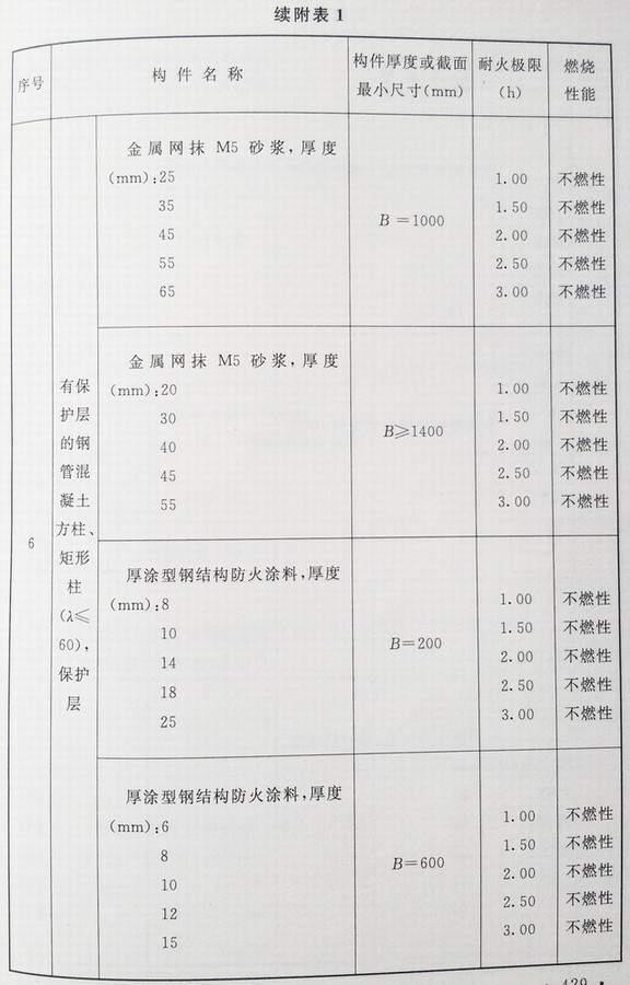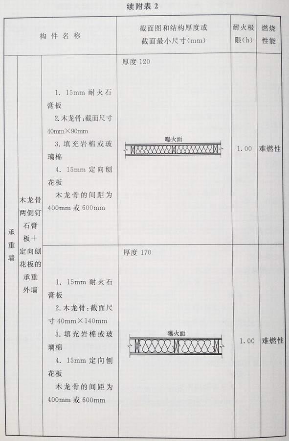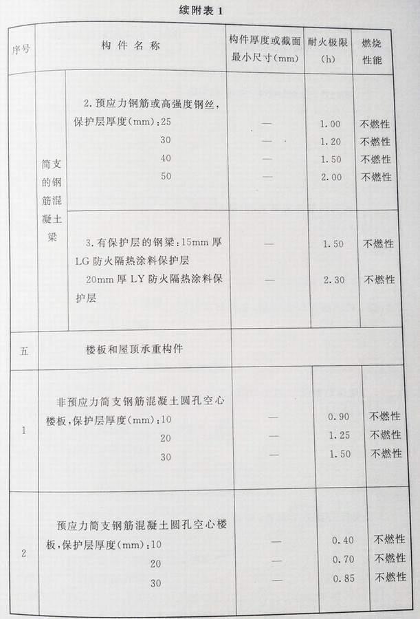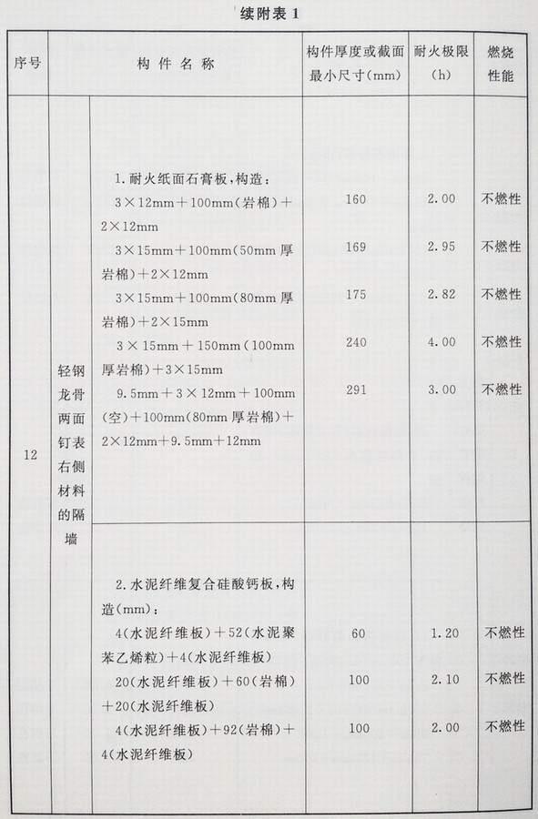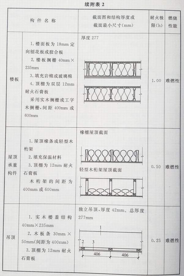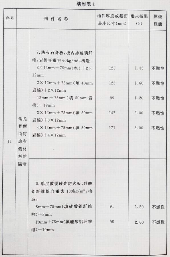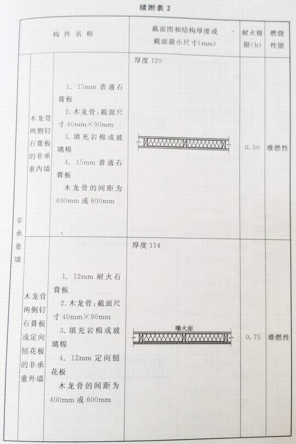 附录 各类建筑构件的燃烧性能和耐火极限替换条文文字