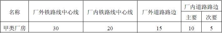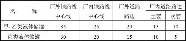 B.0.5 建筑物、储罐或堆场与道路、铁路的防火间距,应为建筑外墙、储罐外壁或相邻堆垛外缘距道路最近一侧路边或铁路中心线的最小水平距离。