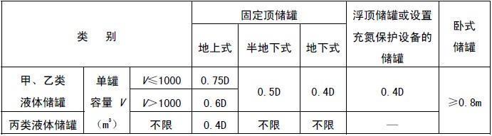 B.0.2 储罐之间的防火间距应为相邻两储罐外壁的最近水平距离。