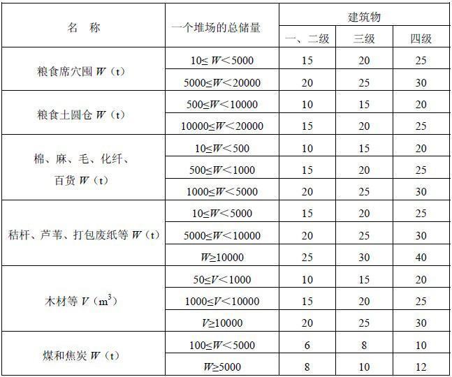 B.0.3 堆场之间的防火间距应为两堆场中相邻堆垛外缘的最近水平距离。
